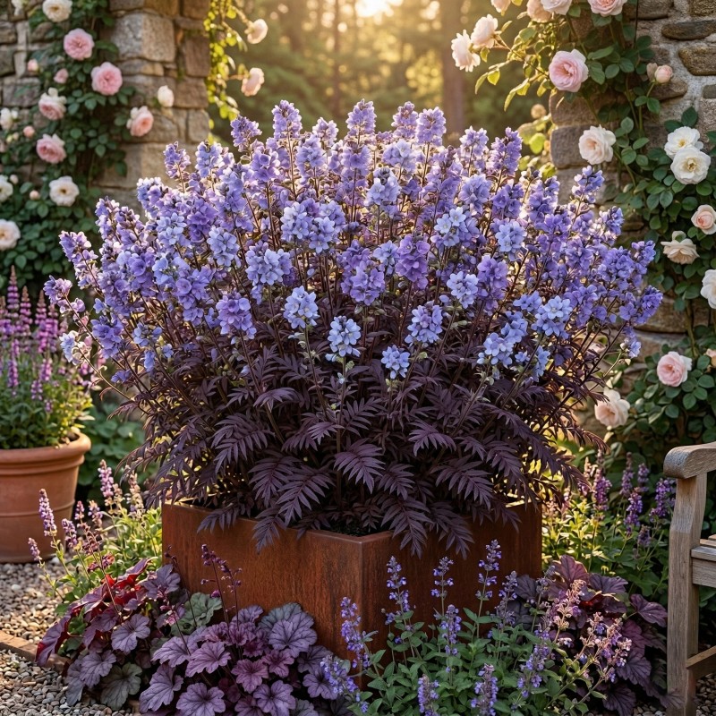 Wyobraź sobie roślinę, która kusi niesamowitym aromatem i przyciąga spojrzenia zjawiskowym połączeniem nietuzinkowych barw. Wielosił rozesłany 'Heaven Scent' to niezwykle urokliwa bylina, która wnosi do wiosennych kompozycji powiew prawdziwej rześkości i elegancji. Wprowadzając ją do ogrodu, zyskujesz wielowymiarowego, ogrodowego kameleona. Wczesną wiosną roślina wypuszcza niesamowicie ozdobne, koperkowo-paprociowate liście w odcieniu głębokiej purpury i burgunda. Wraz ze stopniowym wzrostem temperatur liście delikatnie zielenieją, a na ich tle pojawiają się dziesiątki dzwonkowatych, błękitno-fioletowych kwiatów o obłędnym, naturalnie słodkim zapachu.