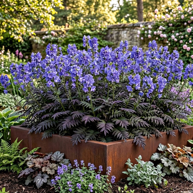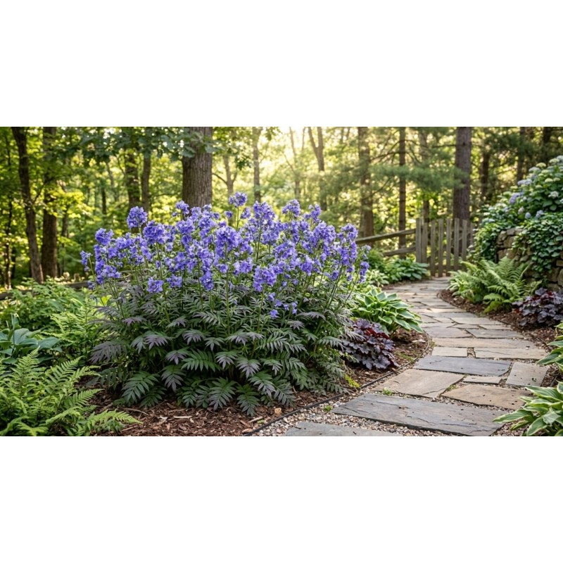 Z jakimi roślinami najlepiej komponować wielosił w półcieniu? Jego intensywnie błękitne kwiaty oraz purpurowe wczesną wiosną liście genialnie wręcz łączą się z barwnymi żurawkami (heucherami), zwiewnymi paprociami japońskimi, kwitnącymi równolegle serduszkami okazałymi oraz zjawiskowymi funkiami (hostami). Wykorzystując to połączenie, stworzysz prawdziwie królewskie poszycie.